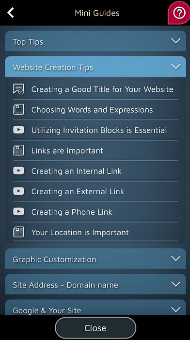 Tillsammans fungerar appen och guiderna som en assistent som hjälper dig att öva på konsten att skapa en bra webbplats utan ansträngning!